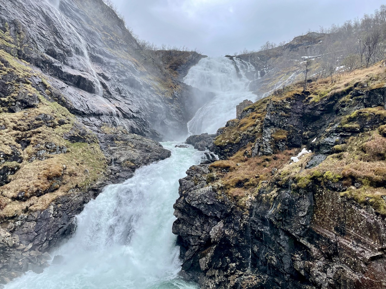 The train ends in the small town of Flam. We have an hour to spend here. It’s a bit chilly (hah! finally my clothes are weather-appropriate!) and there are many little stands and bakeries here to refuel and relax. I got a big hunk of warm cheesy pesto bread from the bakery because bread at home hates me and we people watched in the cold until it was time to board.