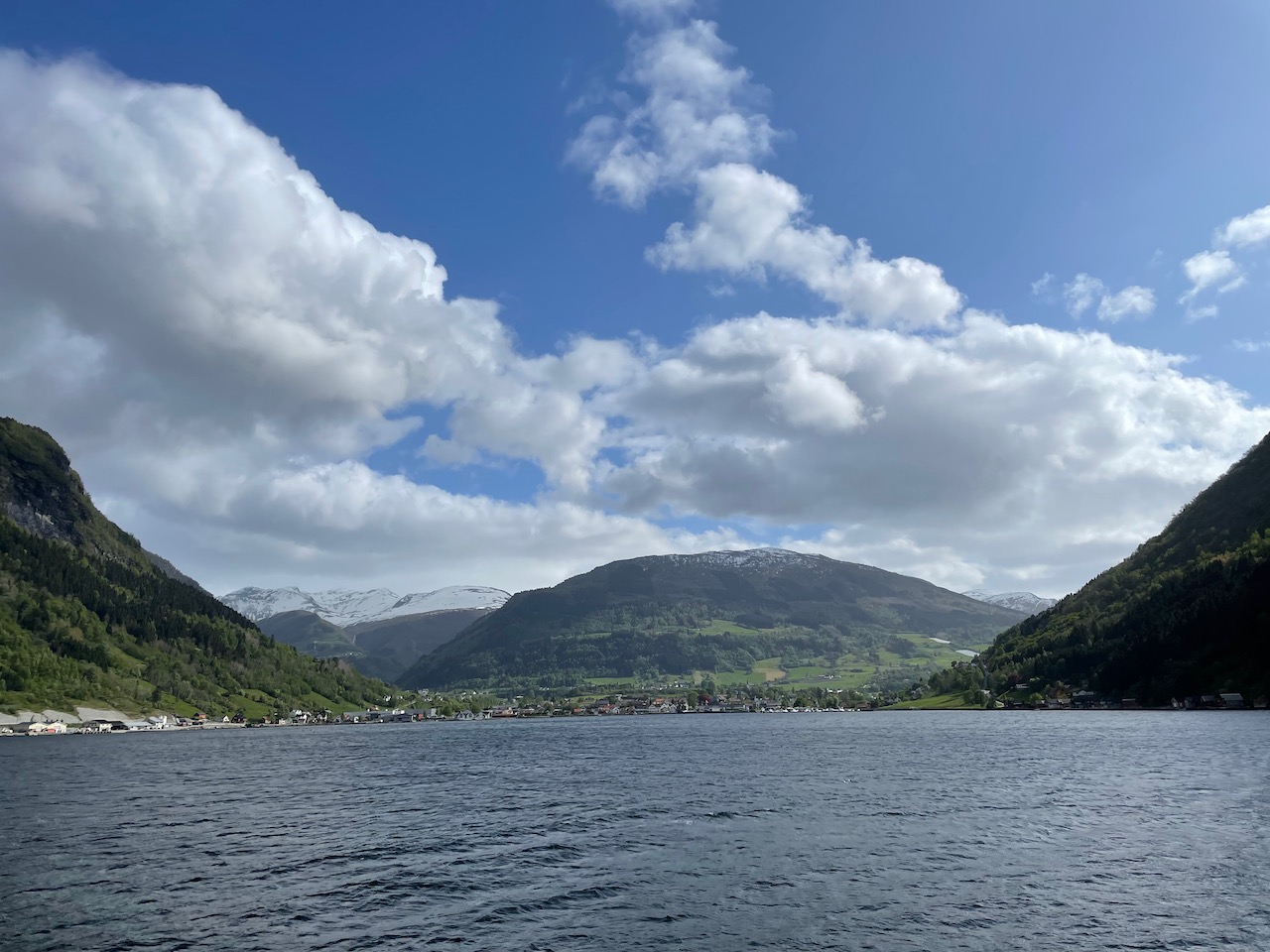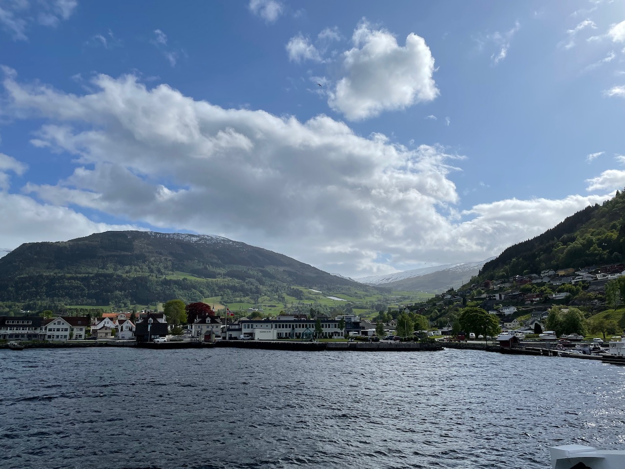 We catch our ferry to Balestrand, a swift boat that takes just over an hour to arrive. Notably, it has a small cafe on board that will sell you hot dogs, sandwiches, hot drinks, and ice cream: the staples of the tourist diet. My cheesy bread was superior, but I will be back for this cafe when we leave.