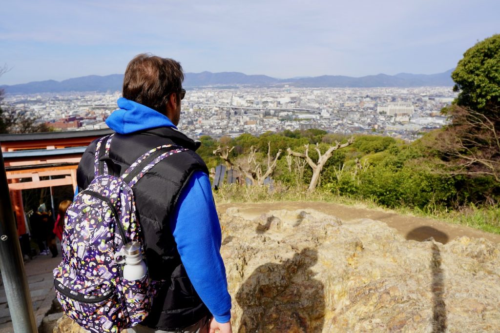 And I wasn’t! It was harder than I thought since I’m currently the beast of burden, carrying the backpack up the mountain. The hordes definitely thinned out after the first city viewpoint. We were free to wind up and down the mountain steps in pursuit of the fox shrines and a workout. At one point, a fireman JOGGING UP THE MOUNTAIN passed us. I felt weak and pitiful.