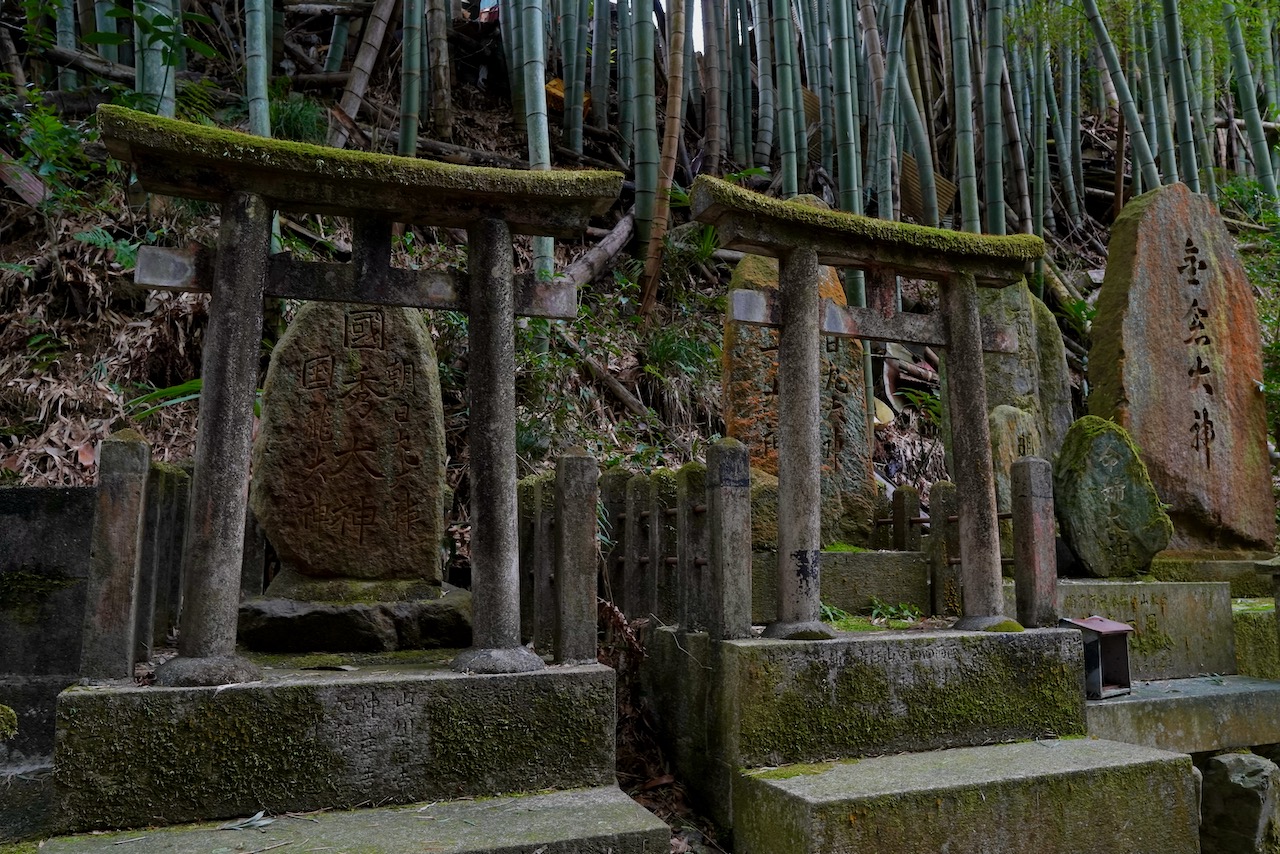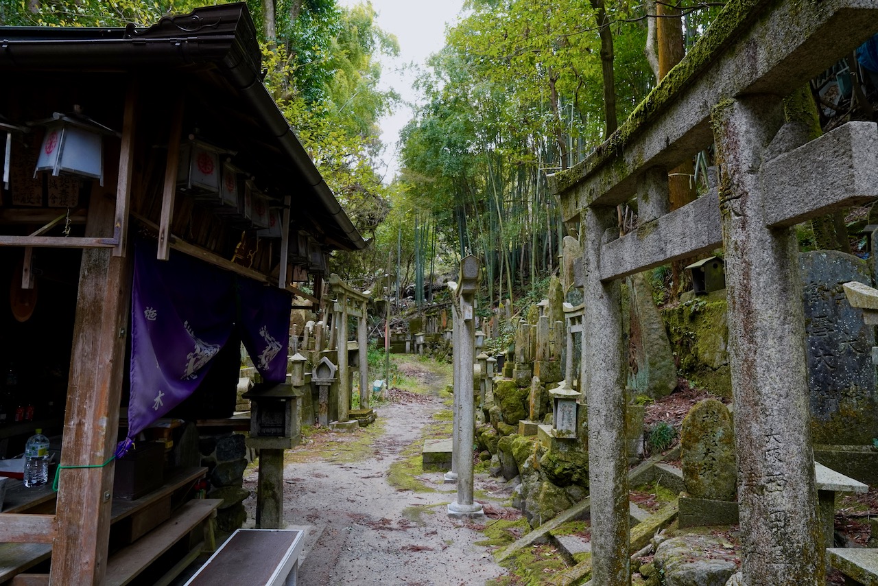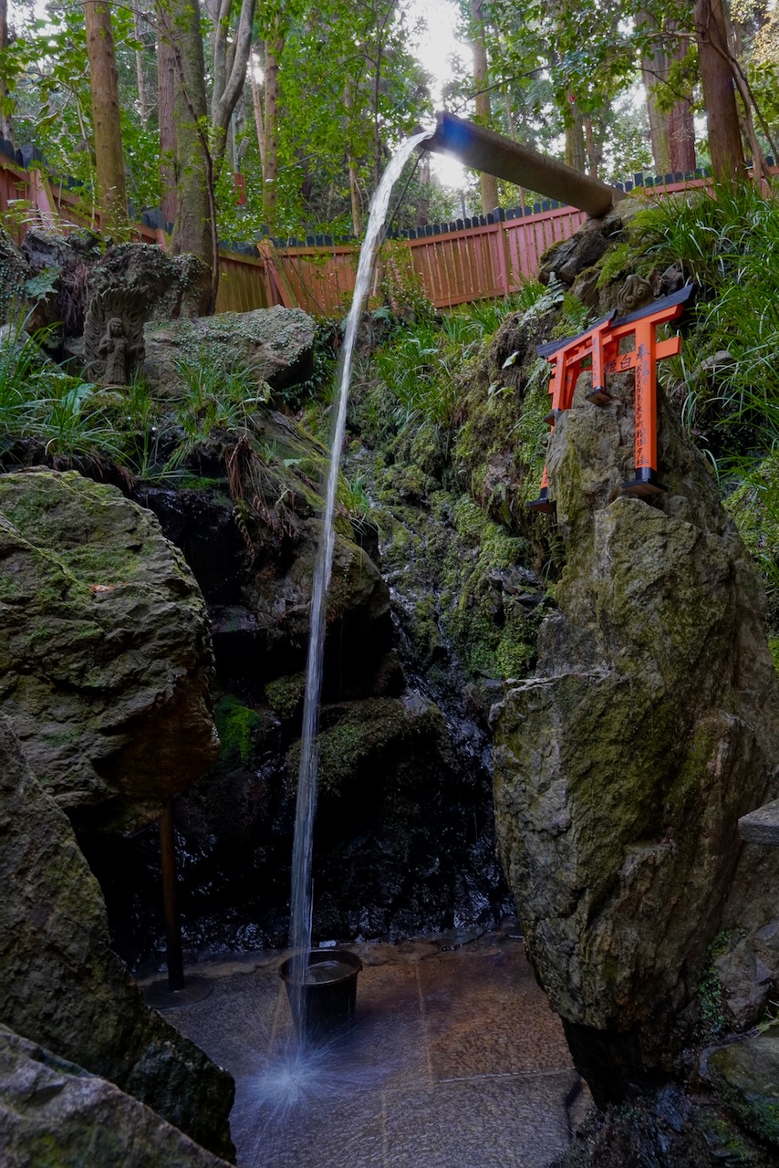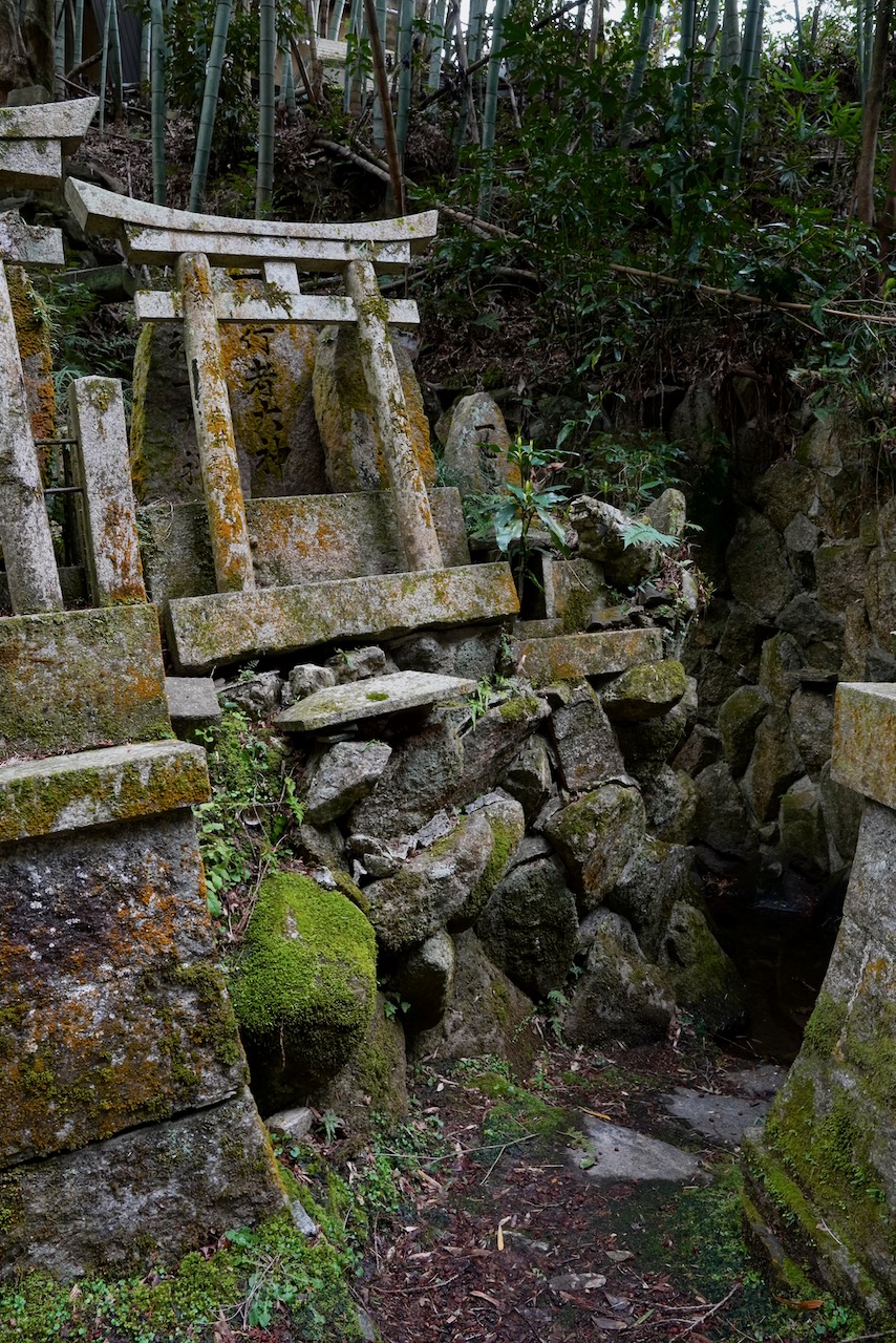 You can walk through a bamboo-lined path and into a ravine with a creek and a mossy and forgotten-looking sub-shrine. Because I’m a boring adult, all I can think of is how expensive these heavy stone gates must have been and how they’re all just back here collecting spirits and moss.