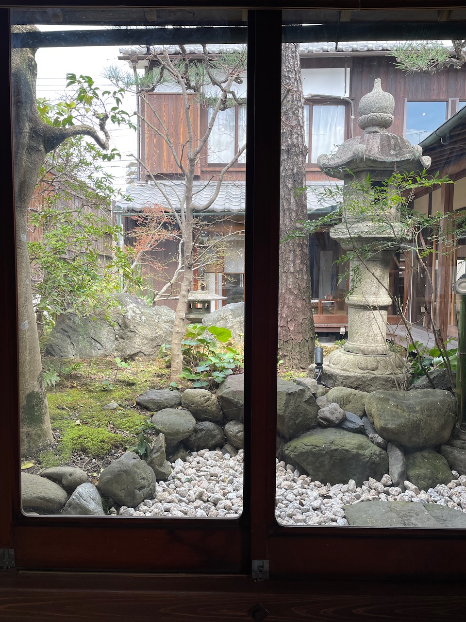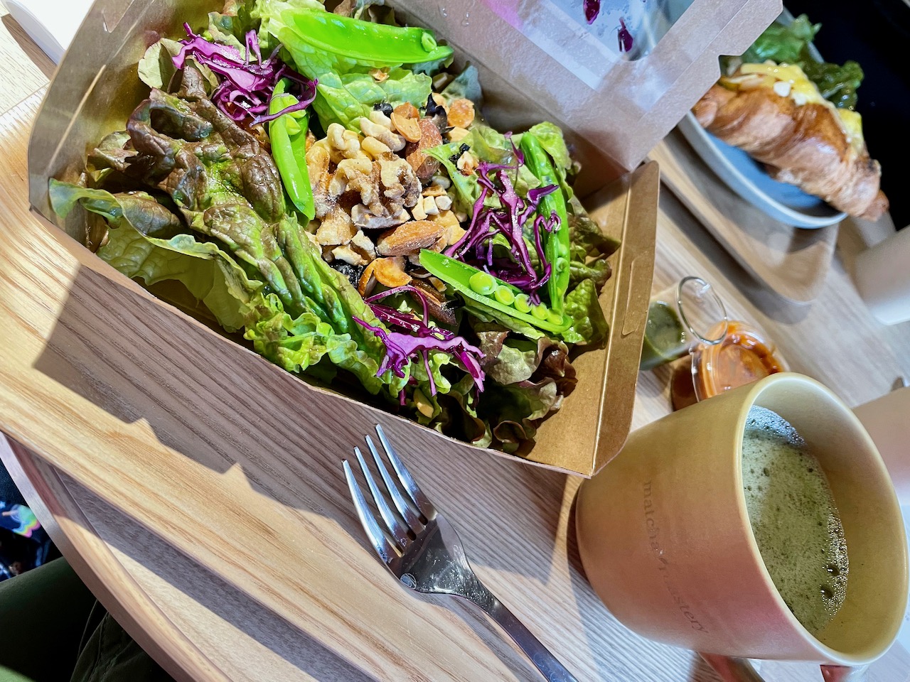 So now that you know that, you have extra appreciation for the fact that Uji’s Thing is matcha. We went to a highly-rated cafe just a few steps off the main drag – Matcha Roastery. Every menu item used matcha in some way. My salad had a slightly spicy matcha dressing, as did Rhett’s. My latte was phenomenal. We had the cafe next to the inner garden to ourselves for most of the time.