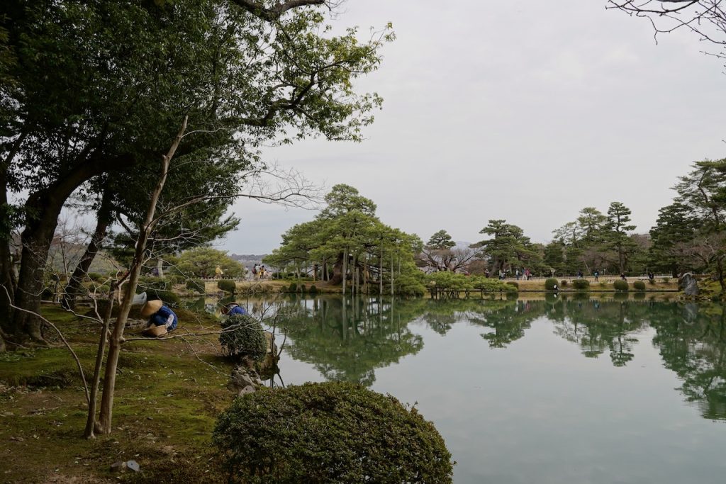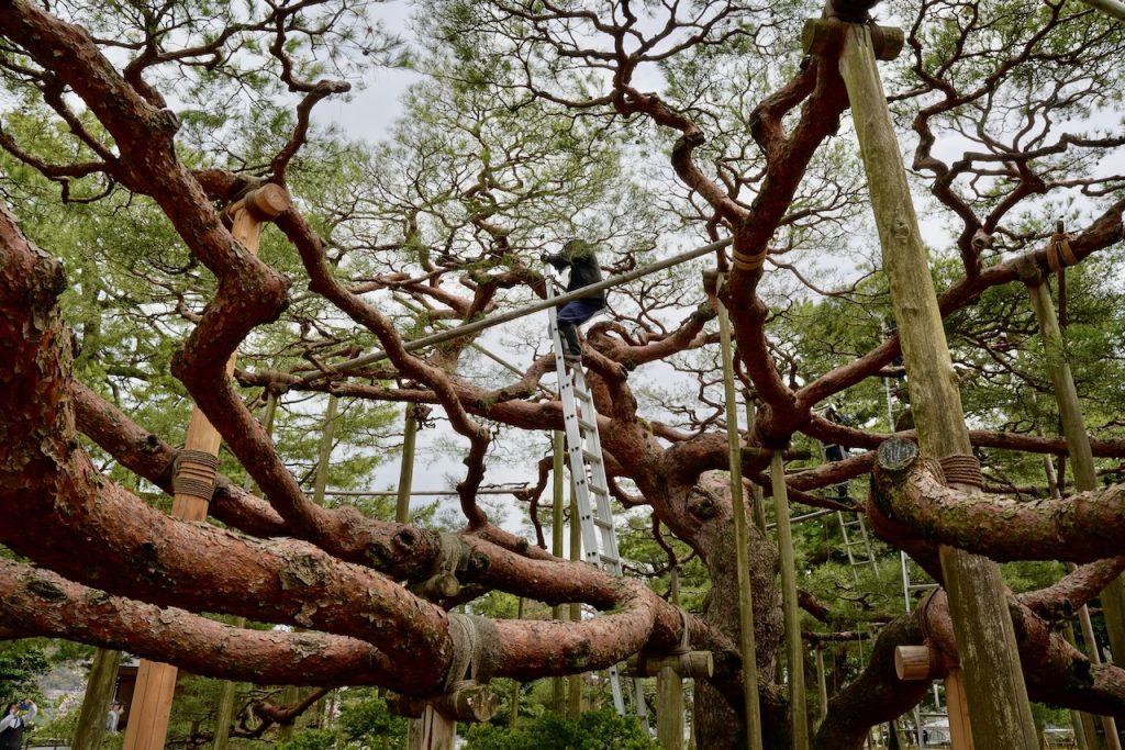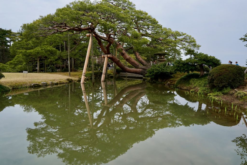 The castle has a garden attached, Kenroku-en, which is of coursed landscaped beautifully. It’s dotted with cherry blossoms and ponds and ancient pine trees that are held up with old supports. The cherries are starting to bloom but the pines are really what gets me.