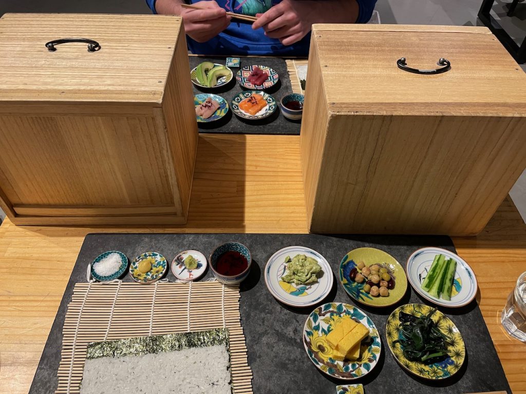 For dinner, I found a place that is basically a DIY hosomaki sushi shop – where you pick ingredients and then make your own sushi roll. I feel like this would be a fun and pretty accessible thing to have in the US, since you can use your chosen ingredients to make whatever you want in your rolls. There’s a little video on how to make hosomaki and I watch it twice.