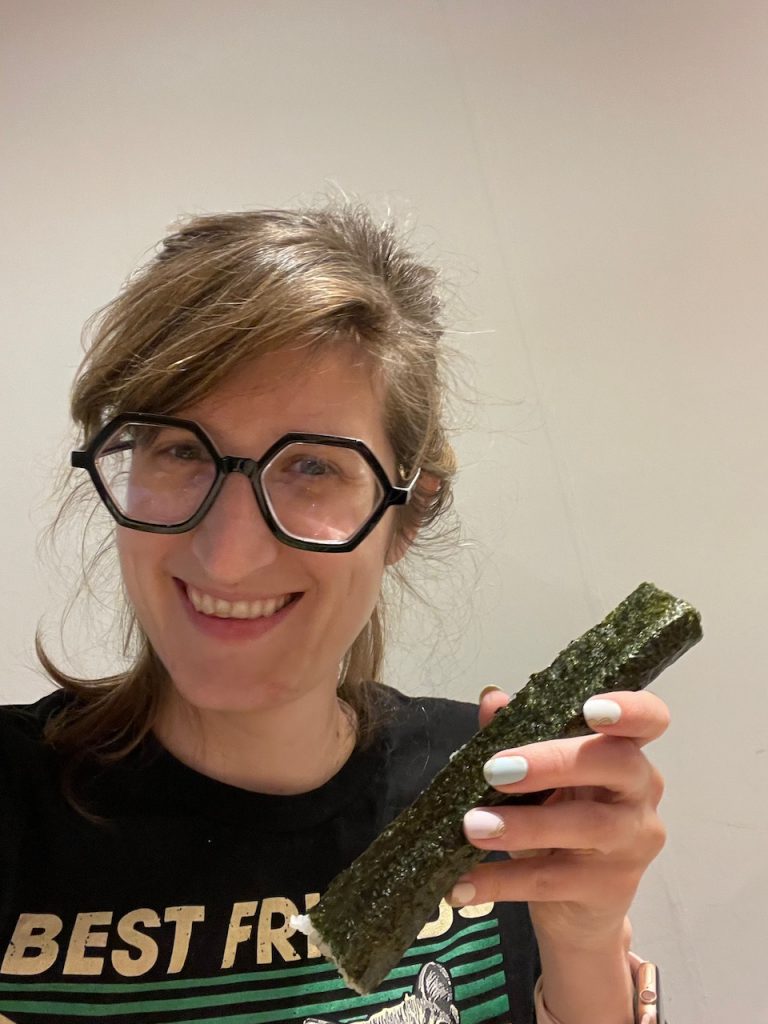 But then – we won’t talk about the crimes I committed when I tried to roll the other two rolls, fillings and rice bursting out, fusing to the sushi-rolling mat. Nobody kicked me out of the restaurant for whatever reason. I was nearly crying from laughter.
