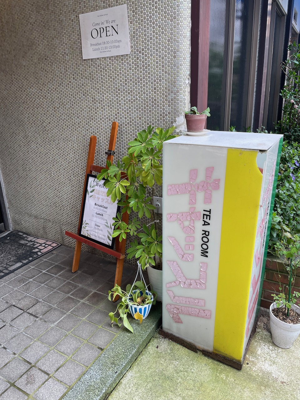 On our last morning, we revisited the little tea room castle diner and moseyed around Higashi-chaya in search of useful souvenirs and this is the story of how I now own hot pink earrings and a gold leaf kitty cat mirror.