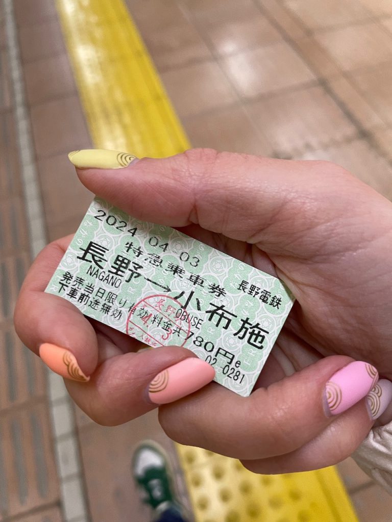 Rhett desires siesta. I desire Hokusai. I throw my things down and go back to the station to go to the Hokusai museum in Obuse. I take the electric rail, which still requires paper tickets (and you can buy them electronically with your IC card, for the ultimate electric rail irony). You hand your ticket to a dude and throw it in a basket when you get off and it’s really the honor system if you’re a foreigner because nobody speaks English well enough out here for that, and I won’t reveal my secret fluency.