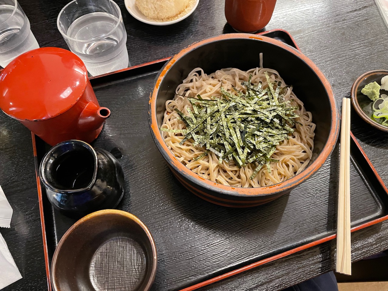 I moistly made my way home, origami paper in tow, and we went to the station to get soba, Shinshuu style. There’s so much soba up here – it’s made locally with the magical water and is considered a specialty. Shinshuu (信州) is the ancient name for this place, so lots of things with traditional-style food says Shinshuu on them. This soba place has real-ass wasabi that comes with our meals. It’s smoother and less watery and builds to a burn more slowly. Definitely a tasty treat. I ponder if I can smuggle some home.
