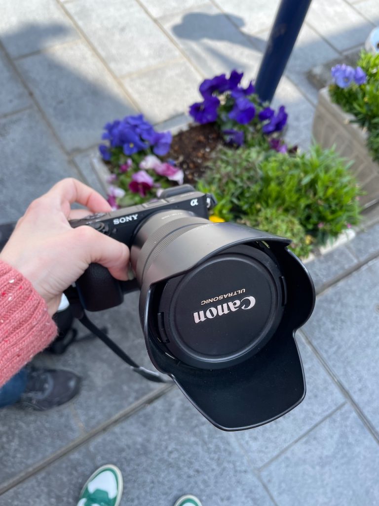 The camera shop guy fortunately had a lens cap for me. He was so worried about the lens cap brand mismatching the camera. I told him I didn’t care so long as the lens was protected! And it was just 200 yen. Easy peasy. And now I have a cannon-looking sony chimera beast.