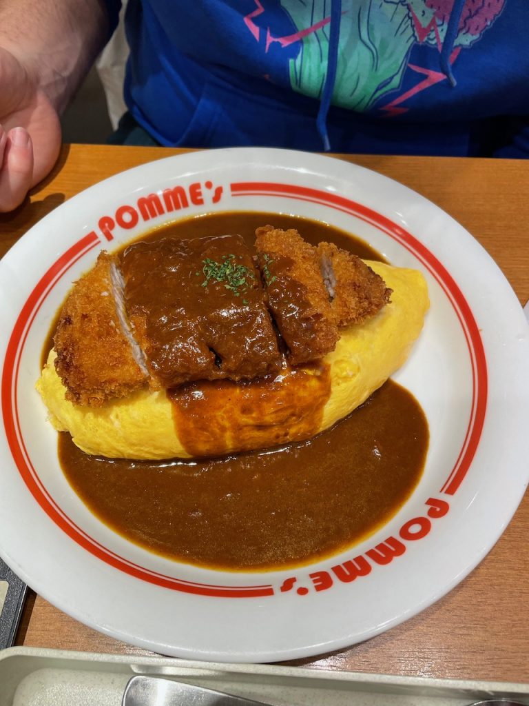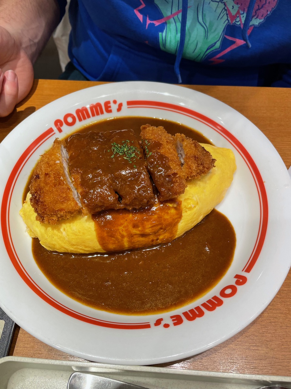 Our final Nagano meal was Omu rice (omelette rice). This is a staple of Japanese comfort food to me, and I would be shocked if you found one at a Japanese restaurant outside Japan. It’s generally made by being a random I-have-leftovers meal where you make fried rice, chuck an omelette on it, and top it with ketchup or curry or whatever you have lying around.
