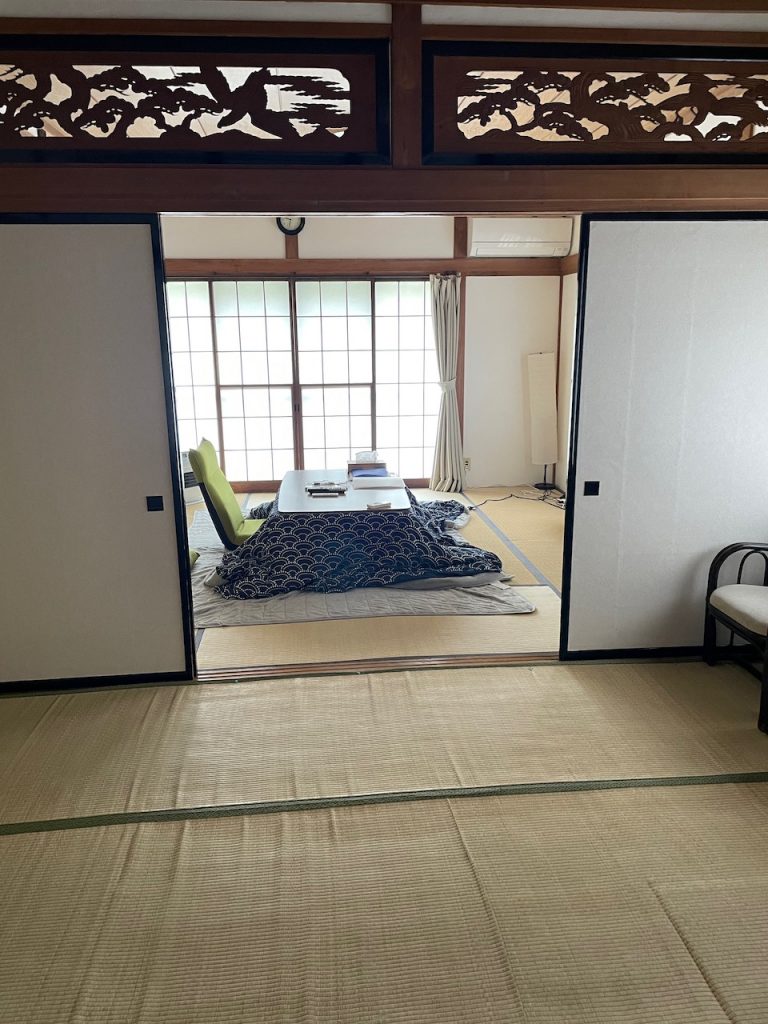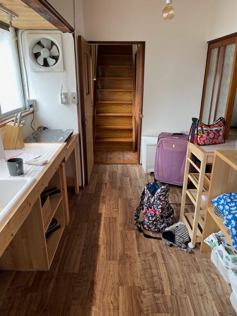 It has a kotatsu, beautiful woodwork, death stairs, and many spots for Rhett to bonk his head. It smells like sweet tatami and cypress. You can hear the trickle of one of the nearby streams constantly. Despite its weird location, I love it.