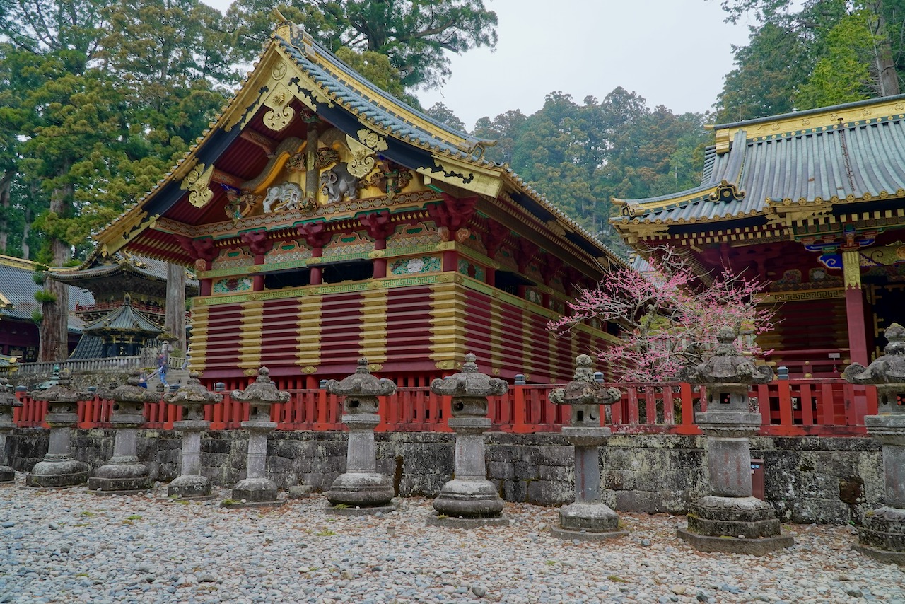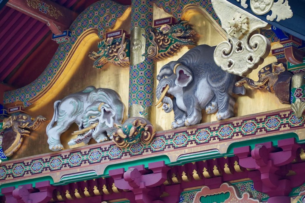 We arrive too early to check in, so we picked up our rental car and went to Toshogu, which is where Tokugawa Ieyasu is interred. You learn about him ad nauseam in Japanese history, as he united the country and ushered in the final age of samurai rule, which lated about two centuries starting in the 1600s. His shrine has a ton of gold everywhere, amidst massive cedar trees. The gates are carved ornately. Someone who Totally Knew What An Elephant Looks Like carved some elephants into the side of one of the buildings.