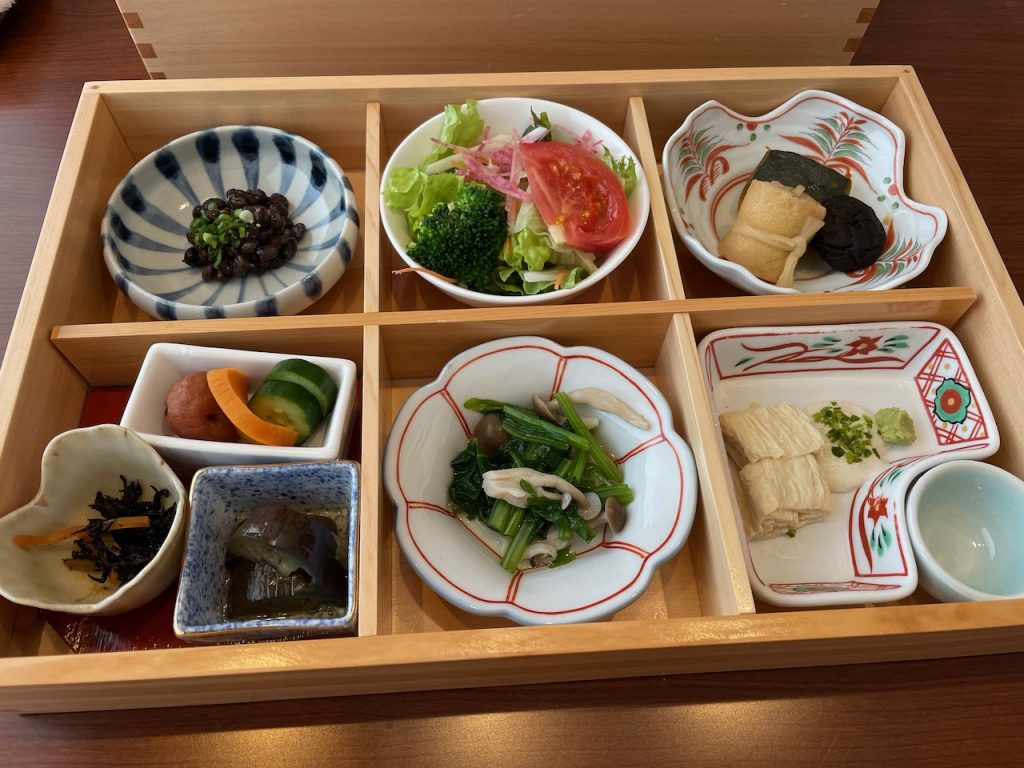 The hotel tries to murder you with food. Breakfast is also ginormous – a traditional japanese breakfast with several pickled sides (tsukemono), more yuba for me, and a tofu pudding for dessert. I won’t be eating for the rest of the trip.