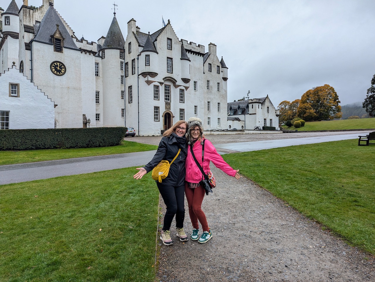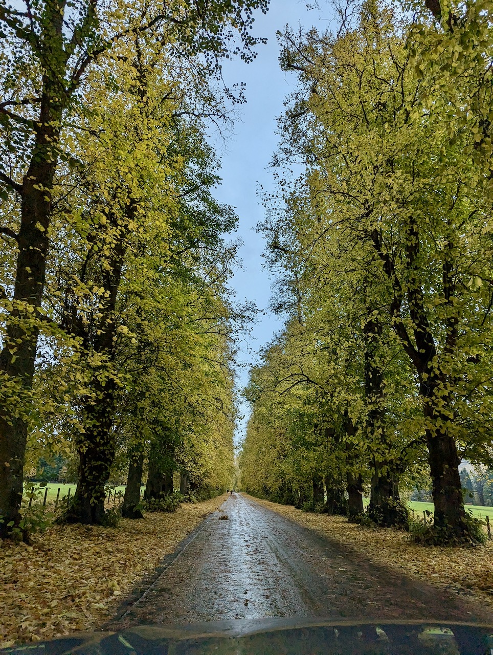 Blair Castle is a white-clad castle, at the end of a lane of trees that are currently perfectly yellow and throwing down their leaves en masse as we drive up.