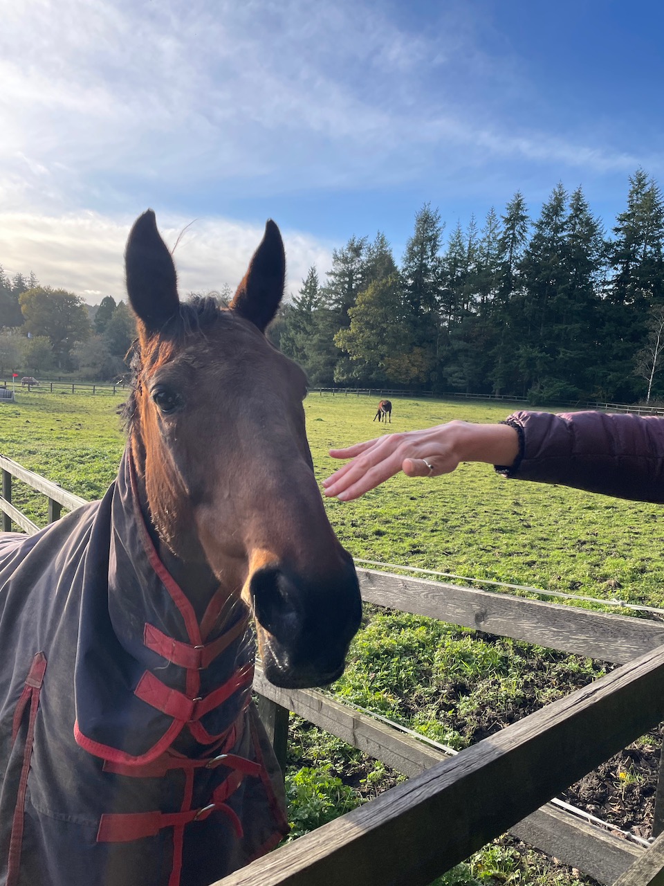 Our air bnb is a charming cottage at the end of a lane. They have horses! I think they’re dressage horses but I will eventually ask the owner. We got to pet one and this is collectively the best day ever for us.