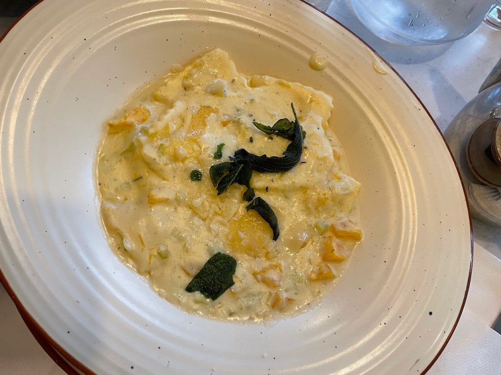 It is about now I realize that I have forgotten about eating, so we got a snack and tea and then go up the road to enjoy proper dinner at a fancy golf resort, Tulfarris hotel. I eat a pile of pumpkin ravioli. Life is good.