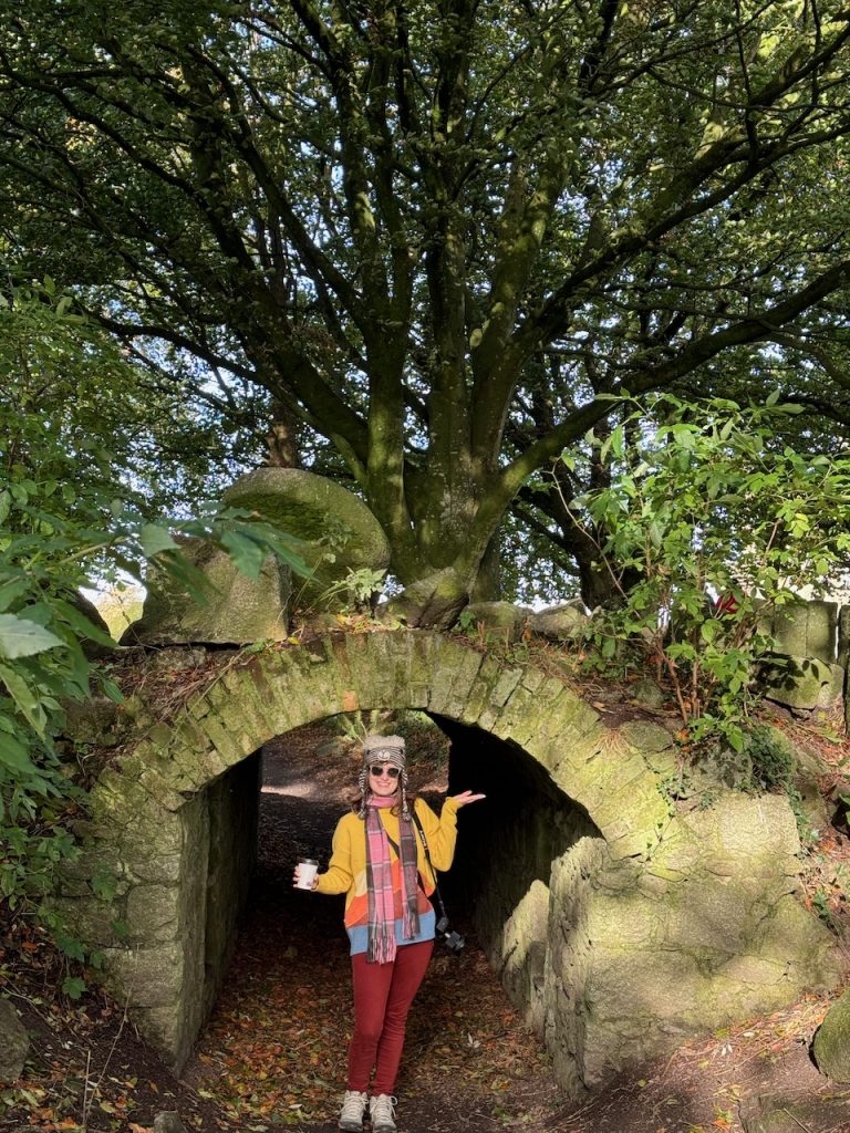 We arrive at the gates of Duckett’s Grove accidentally, which seems to just be a very impressive gatehouse. We had to backtrack to the house itself to see the ruins of an empty, tall manor. It burned down in the 30s and nobody knows exactly how the fire started. You can go walk around it and learn about the Duckett family – mainly that their wealth was built off of strategic marriages. Now, it’s mainly occupied by crows, and locals take their dogs here to let them run off-leash in its fenced-in grounds. It’s free to wander, there’s a cafe inside, and a very cold toilet. I miss my bidet and heated seat especially on this crazy windy day.
