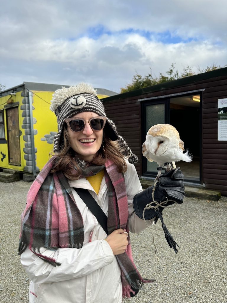 The answer was – well no – not really! But because of the nasty weather, we are the only two on the tour and we catch the last one of the day before they close down early. Our guide really loves his birds and he even goes hunting with his own hawk and ferret – and he meets up with friends who do the same. We learn about how birds of prey slay their foes (usually, with the impact of their fall), that some eagles can just break your wrist with their crushing claws, and we even get to hold a barn owl! Usually they do flying demonstrations, but the littlest owls would be very unhappy about it today. The wind is rude.