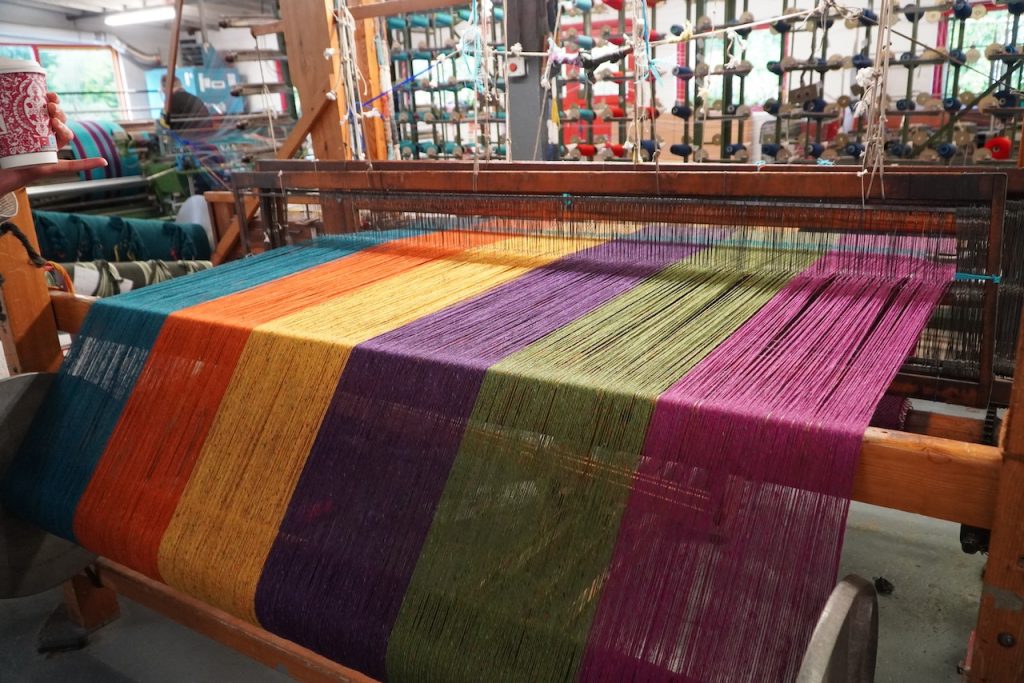 It was started by a collective of local farmers in 1723, but gained in renown when three sisters took it over in the 1800s. One of the sisters was an accomplished botanist and they used her expertise in dyes to create products that really stood out. They quickly became known for their bright, unusual colors and patterns. The mill has been producing off and on-ish for about 300 years and you can find their products, which are almost entirely created in the mill itself, with the exception of finishing – this goes out to other places in Ireland and the UK.