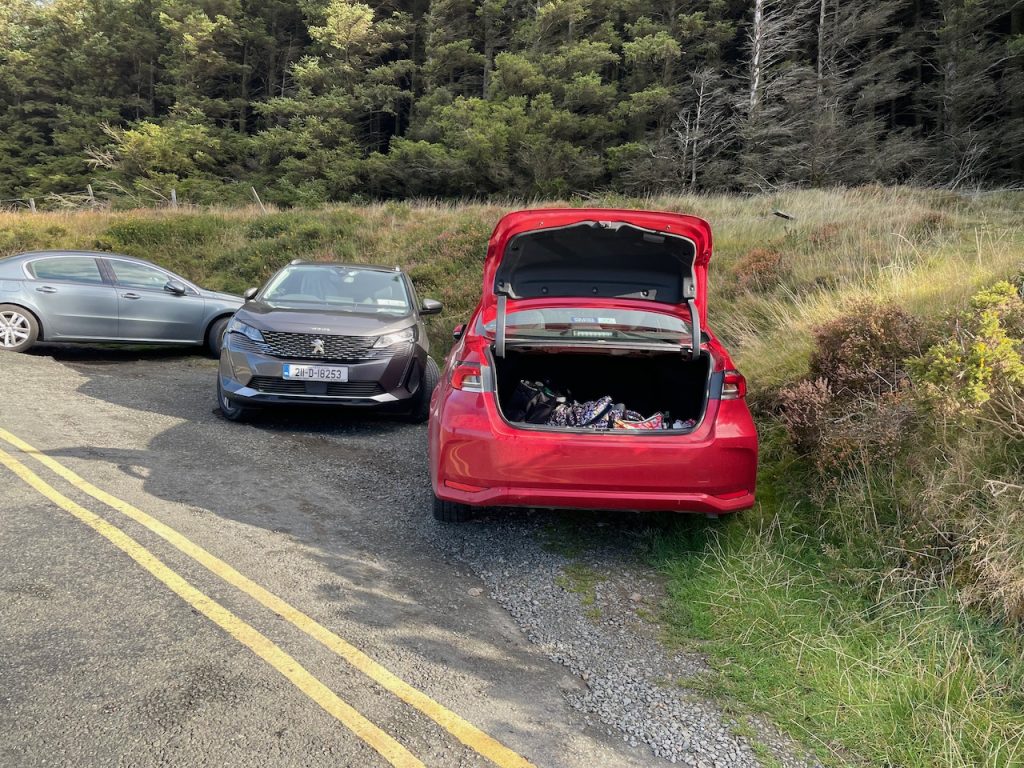 Well, Google is somewhat wrong and confusing (why do I trust it in Europe). There are a few parking spots with signs, but they’re all labeled with just “Ballinastoe” and do not mention a boardwalk anywhere. Great. We find a spot nearby-ish to park and I cram the car next to someone who left exactly one car width between them and the hill and I wiggle out of my door. Backing out and turning around will be exciting.