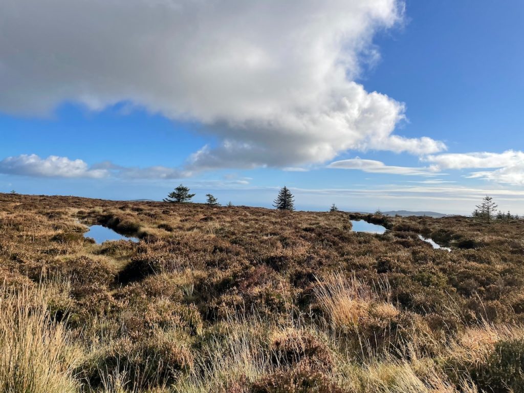 We walk wayyy up the hill on the narrow road and get to the big sign and we choose to just wander on what looks most promising and most popular. I am grateful I have a hiking app on my phone, since this instills way more confidence in us (and I can’t read a map to save my life). If you are really into hiking, you can walk on miles and miles (kilometers and kilometers) of trails up here. It kind of looks like bog to us (blanket bog!), but we are mere boggy novices so what do we know?