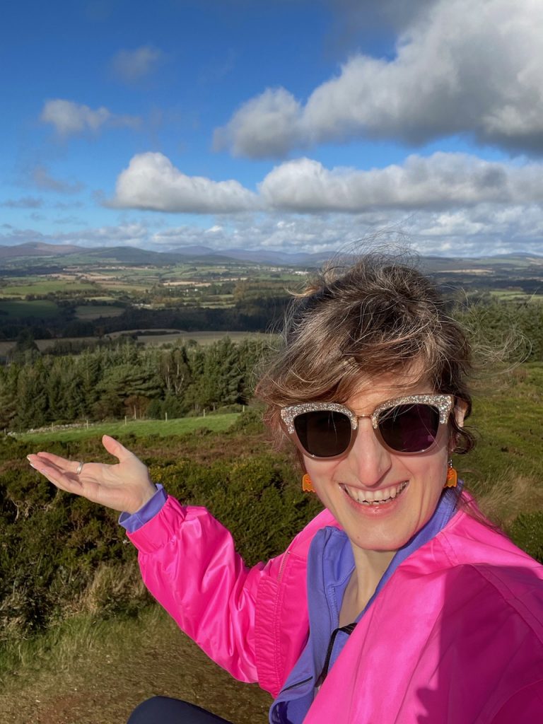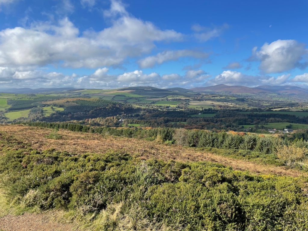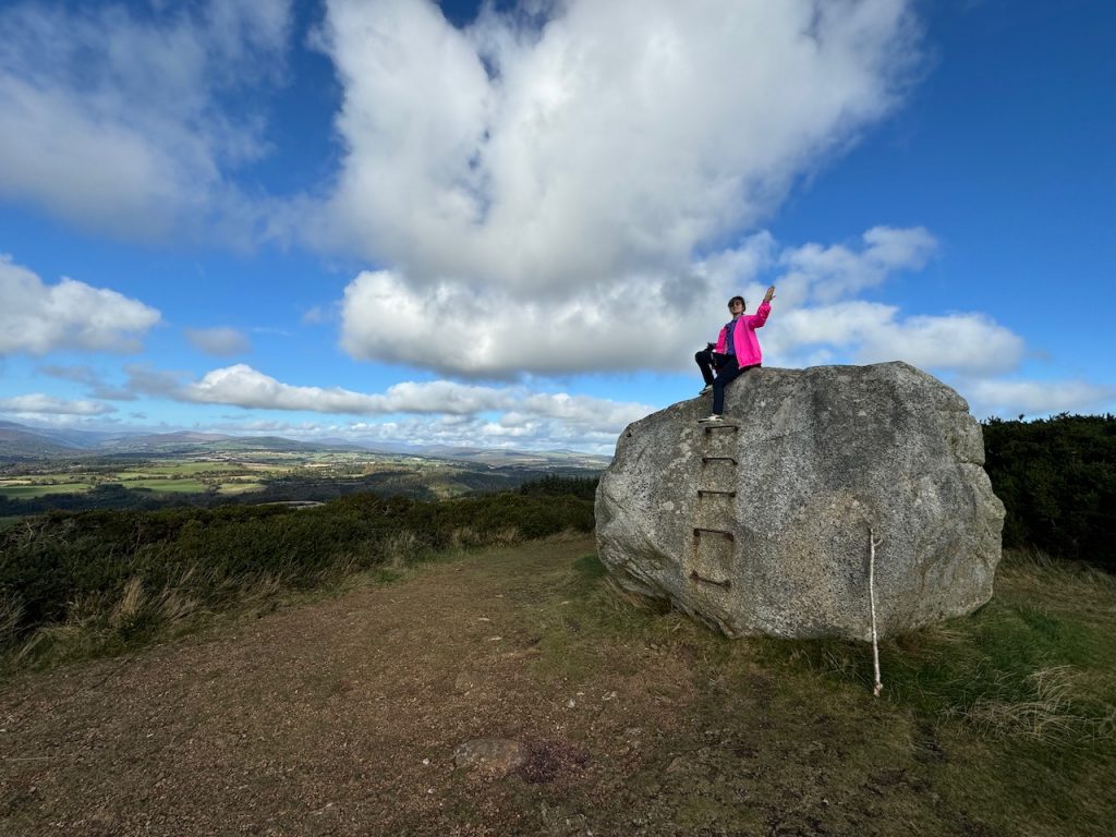 After our short excursion, we have one more stop, for Susan has found a big ol’ rock with 4.6 stars on Google between here and Avoca. Mottee stone, sign me up! We drive past some big draft horses, farmland, get slightly mired behind a tractor, and at the end of a crappy (for Ireland) road, we find our parking for the rock. The rock is up a hill. The view are incredible and on a perfectly clear day, you can see all the way to Wales (I do not know this until afterwards). A+ rock indeed.