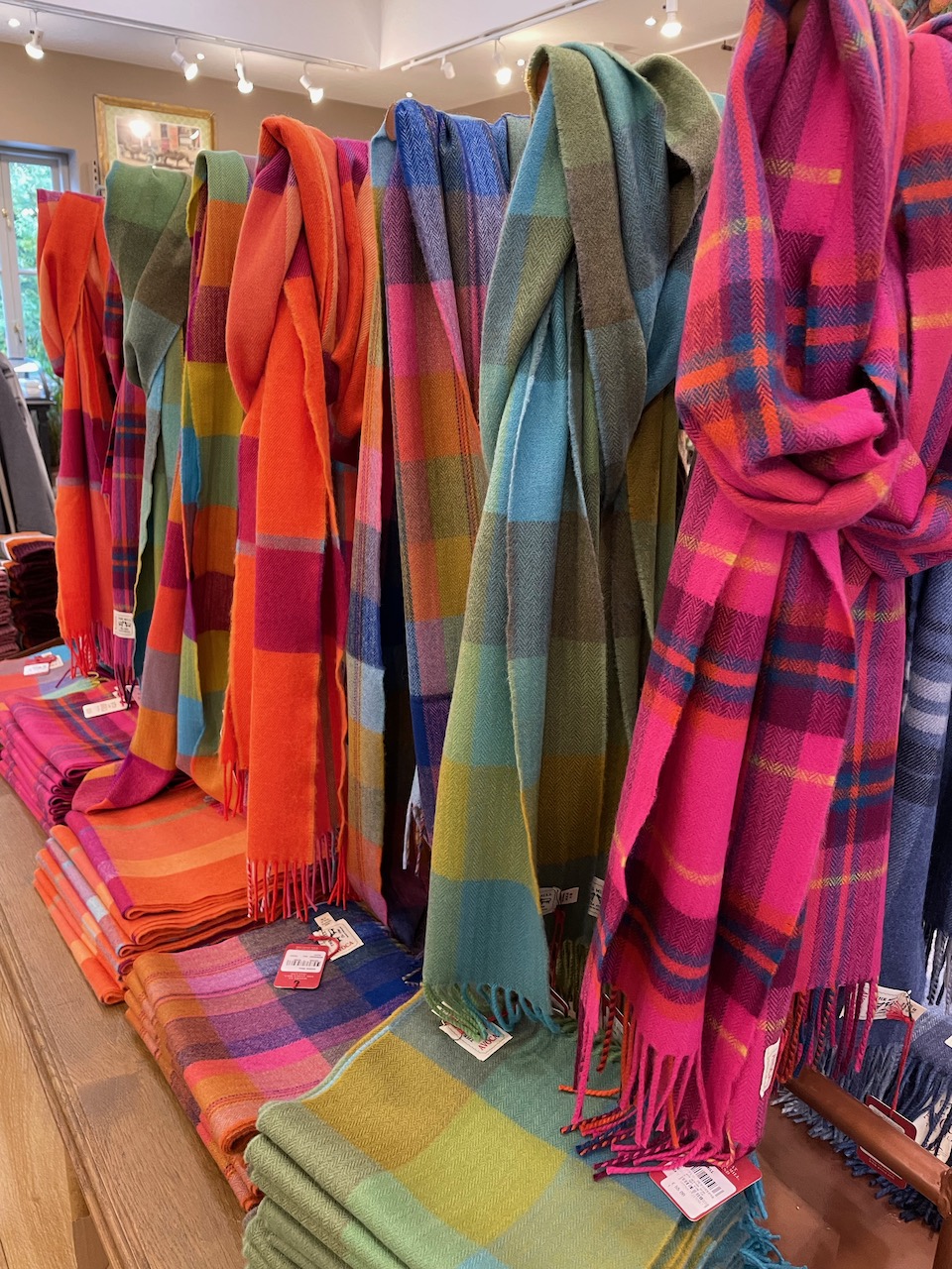It was started by a collective of local farmers in 1723, but gained in renown when three sisters took it over in the 1800s. One of the sisters was an accomplished botanist and they used her expertise in dyes to create products that really stood out. They quickly became known for their bright, unusual colors and patterns. The mill has been producing off and on-ish for about 300 years and you can find their products, which are almost entirely created in the mill itself, with the exception of finishing – this goes out to other places in Ireland and the UK.