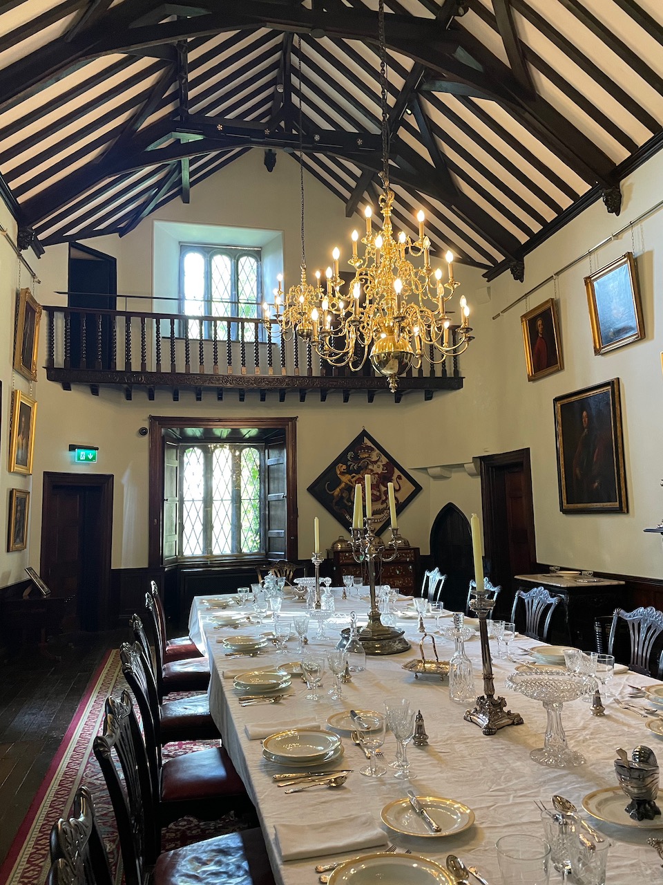 My favorite is the medieval dining hall, complete with a minstrel gallery and a haunted door up to the gallery, which is haunted by Puck, a minstrel who died of a broken heart. The castle is Very Haunted, with locals reporting sightings, and the staff coming into the castle every morning needing to straighten many paintings.