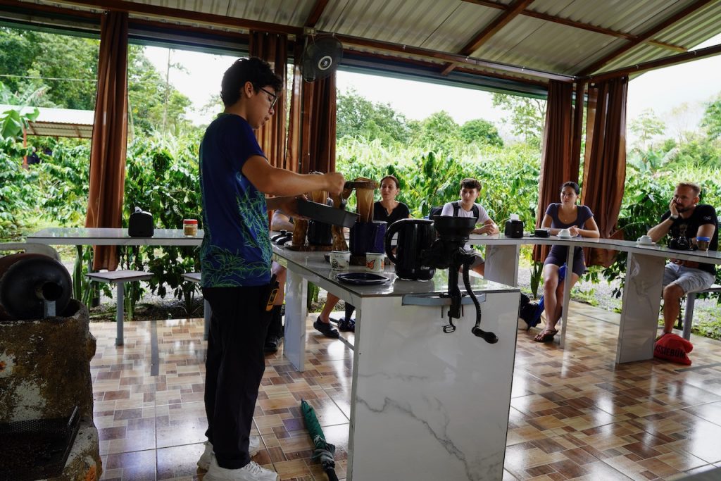 The coffee chocolate tour is at a nearby small plantation. They don’t produce anything at that particular location, as it is mostly for learning and earning the tourist dollars (which is probably more dollars that farming earns you….). Our guide is funny and super smart, and grew up working on a coffee plantation picking coffee beans as a kid. He also travels to compete internationally in marching bands and barista competitions. Neat.