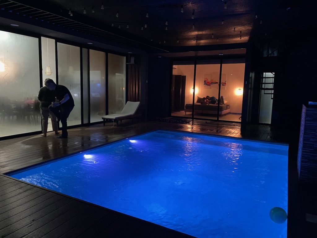Our lodgings are impressive. There is a pool. The AC in one half the house is cranked down to 17 and this fogs up the windows. I am going to be cold here.