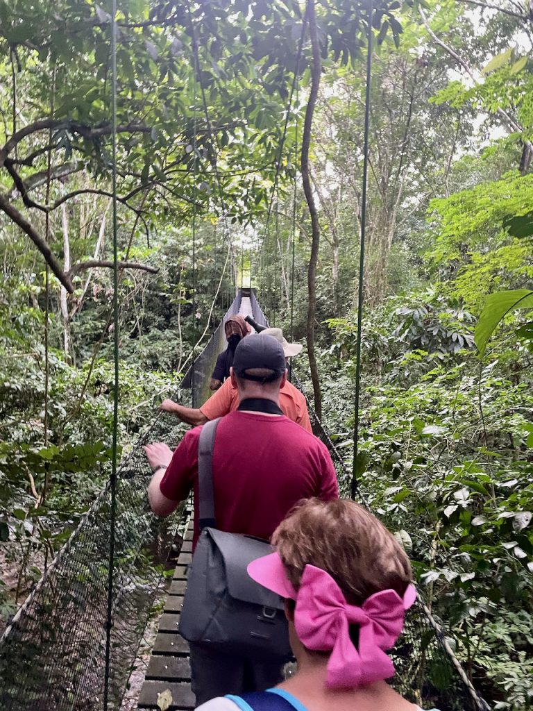 This park was home to a few hanging bridges, which make your legs feel like you are on a woobly ocean when you’re all done crossing them. We could see some monkeys from the bridge, and big blobs of slime hanging from tree leaves over the river. The blobs contained frog eggs. Neat!
