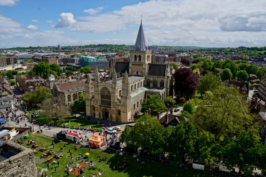 Once I have completed crown sidequest, it is castle time. It’s not very busy, as most people are here for the festival. I can’t imagine it’s terribly busy normally, since Rochester isn’t exactly a hot tourist destination. It’s only £10 for entry per person, and you can get an audio guide (I do this thing). On this day, it’s a little hard to hear over the music when you’re on the first floor. That’s fine, I am like 1/8th deaf anyway.