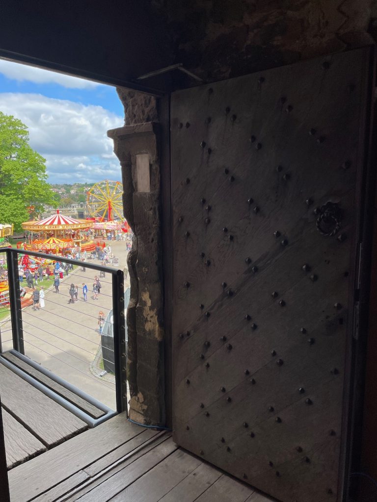 After a morning tea and muffin, we make our way up to the castle. On its grounds we are ambushed by so many more festival foods and rides than we had found yesterday. There are merry go rounds and a stage and a haunted house. It’s giving small town americana festival in the best way, except we are very likely the only americans here, and there is a castle that’s about a thousand years old next to it.
