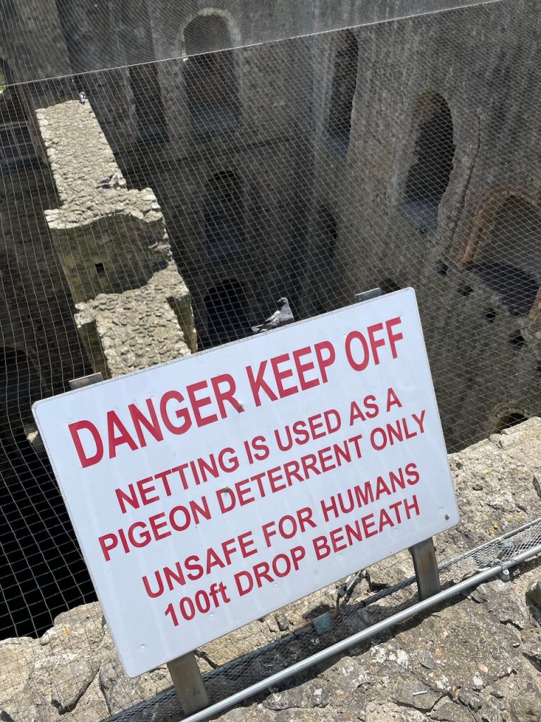 The main keep had four high floors and a cellar – with what looks like at least 20 foot ceilings in each room (I am bad at space so believe me at your own peril). The wood for the floors is of course gone now, but you can see where the floors would have been via the big holes in the walls (which are now occupied by pigeons).