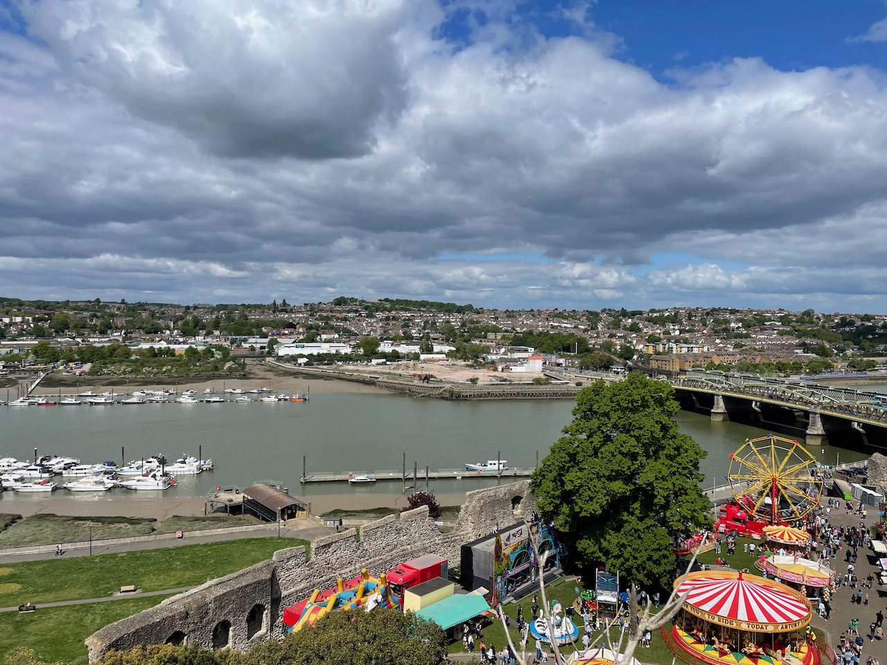 Once I have completed crown sidequest, it is castle time. It’s not very busy, as most people are here for the festival. I can’t imagine it’s terribly busy normally, since Rochester isn’t exactly a hot tourist destination. It’s only £10 for entry per person, and you can get an audio guide (I do this thing). On this day, it’s a little hard to hear over the music when you’re on the first floor. That’s fine, I am like 1/8th deaf anyway.